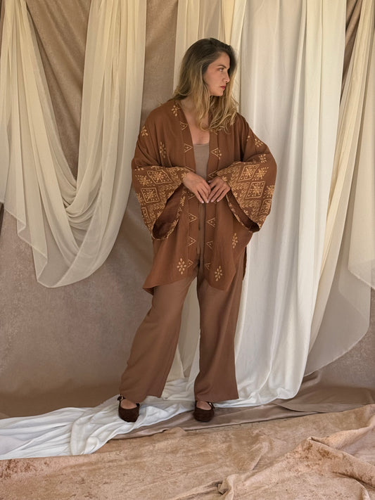 ROBE A FENTES MARRON