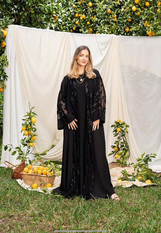 ABAYA NOIR MOUSSELINE LEOPARD