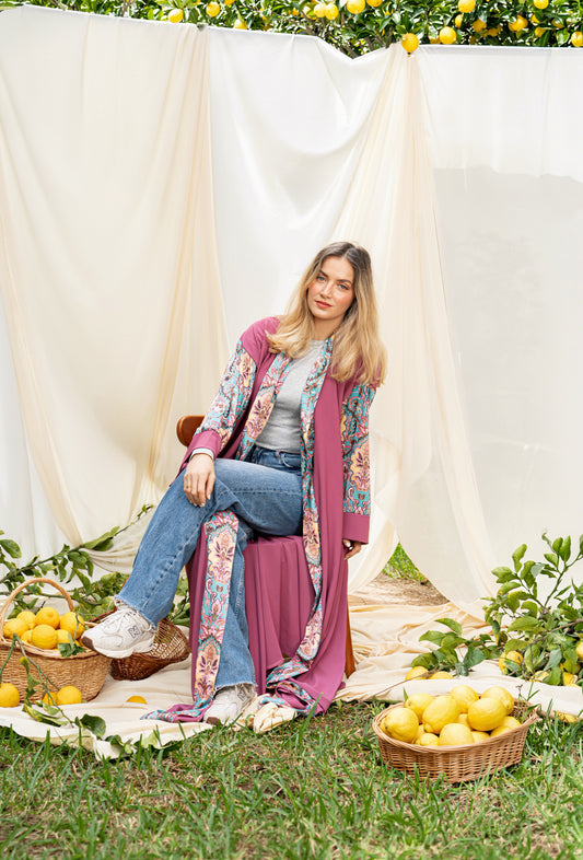 DJELLABA À POCHE ROSE GALON VERT