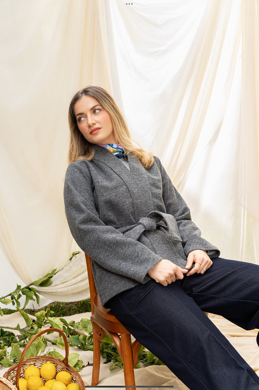 VESTE KIMONO EN CACHEMIRE GRIS