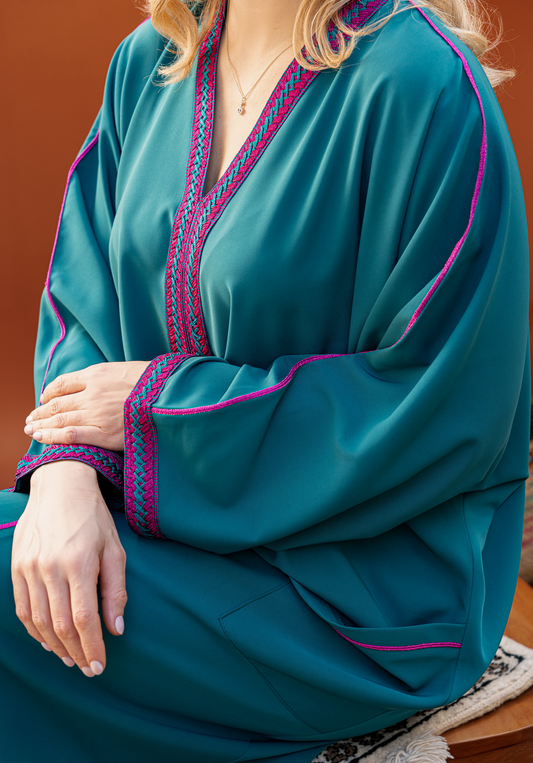 DJELLABA À POCHE BLEU GALON VERT