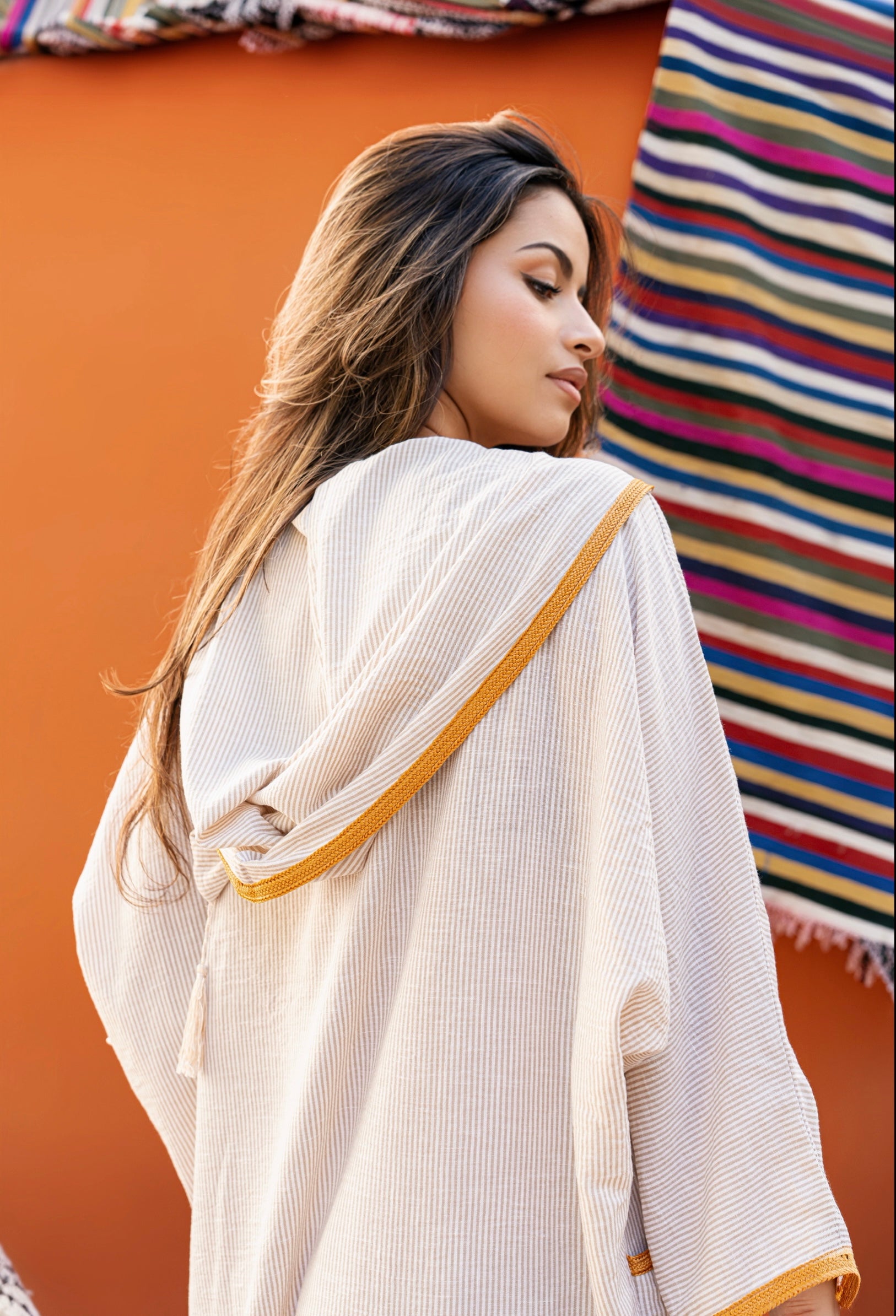 DJELLABA EN LIN À CAPUCHE BEIGE