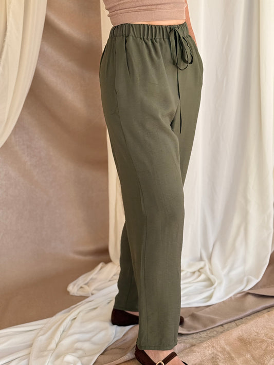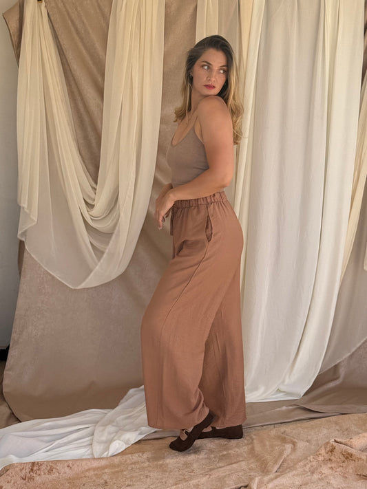 ENSEMBLE EN LIN A RAYURES BEIGE
