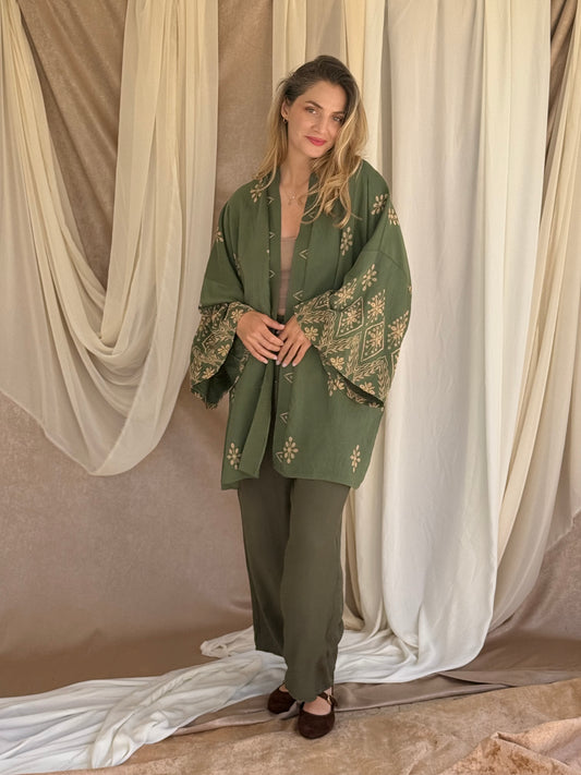 ENSEMBLE KIMONO BRODE MARRON CLAIRE